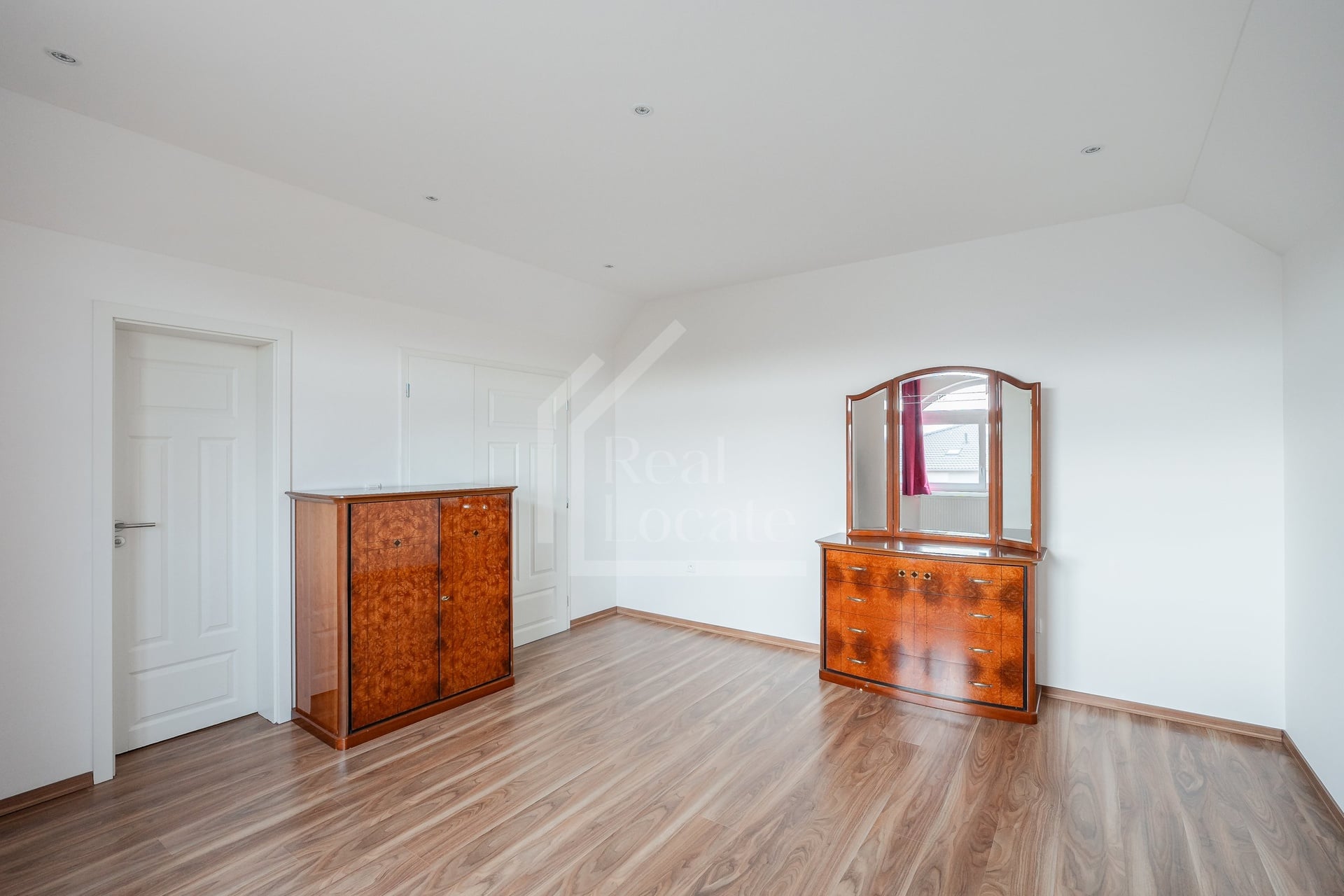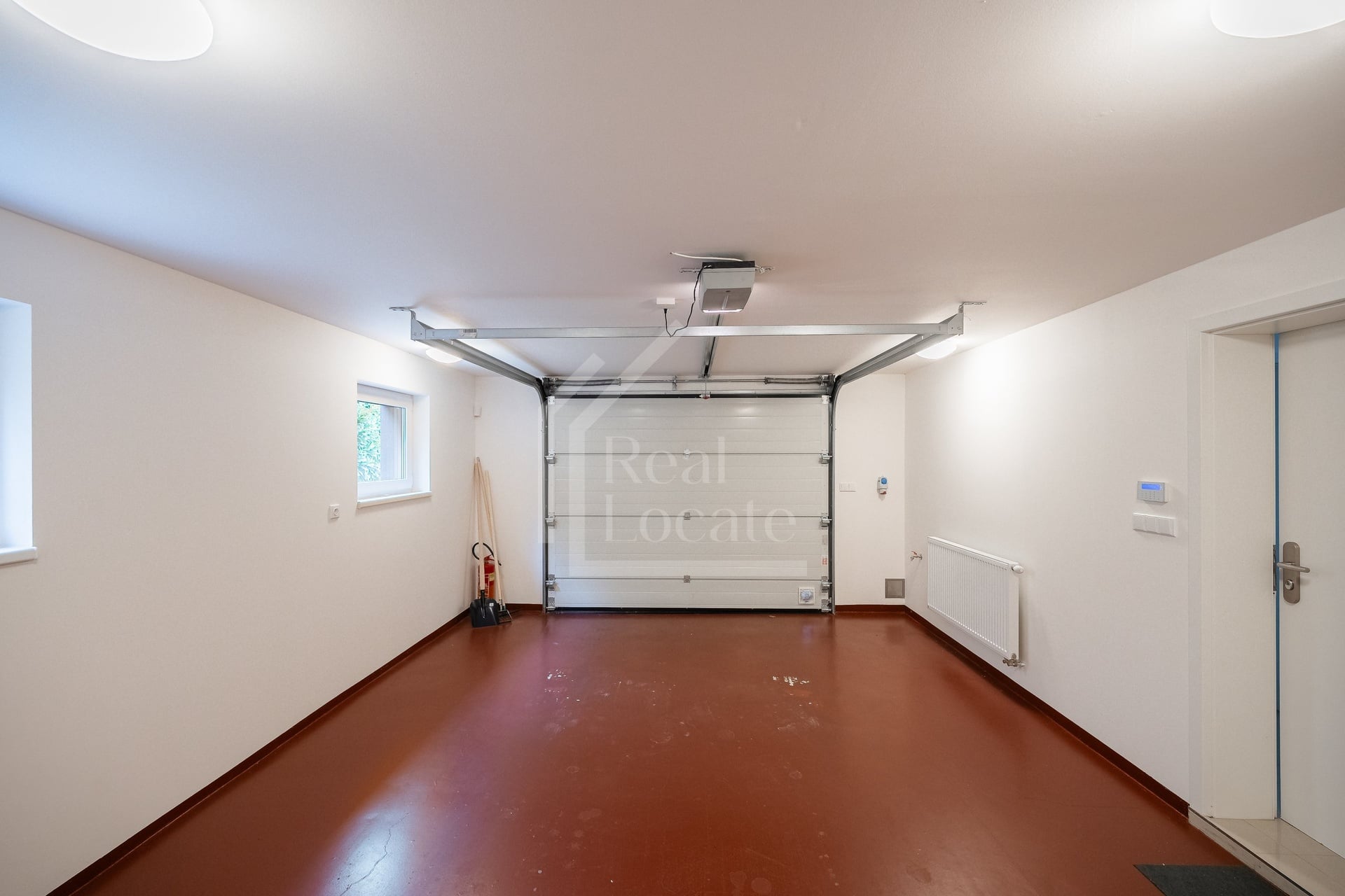 Suterénní prostory: Garáž pro jedno auto, prostorná místnost pro pokoj pro hosty nebo tělocvičnu, technická místnost a úložný prostor.