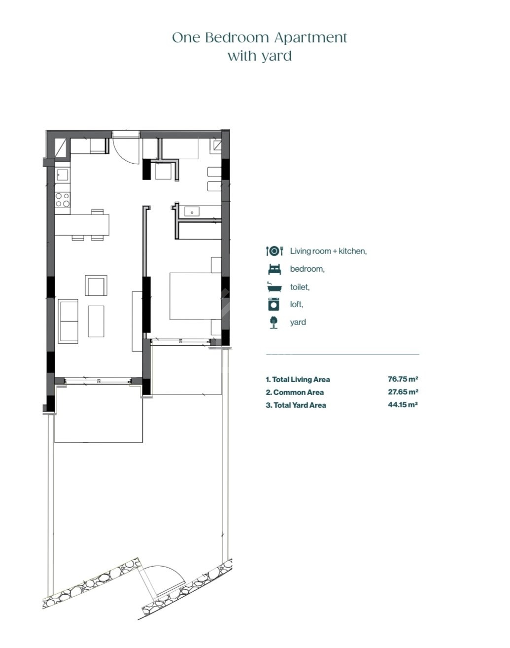 Цена этой квартиры составляет 2900 евро за м2, что представляет собой отличную инвестиционную возможность с потенциалом роста стоимости. Проект является частью современного комплекса с гостиничной инфраструктурой, предлагающего превосходные услуги и удобства.