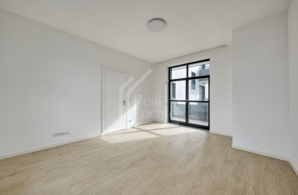 Квартира предлагает просторную гостиную с полностью оборудованной мини-кухней, отдельную спальню и современную ванную комнату. Обстановка включает в себя белую кухню с бытовой техникой, качественное напольное покрытие и современные элементы интерьера. В квартире есть балкон, который предоставляет место для отдыха.