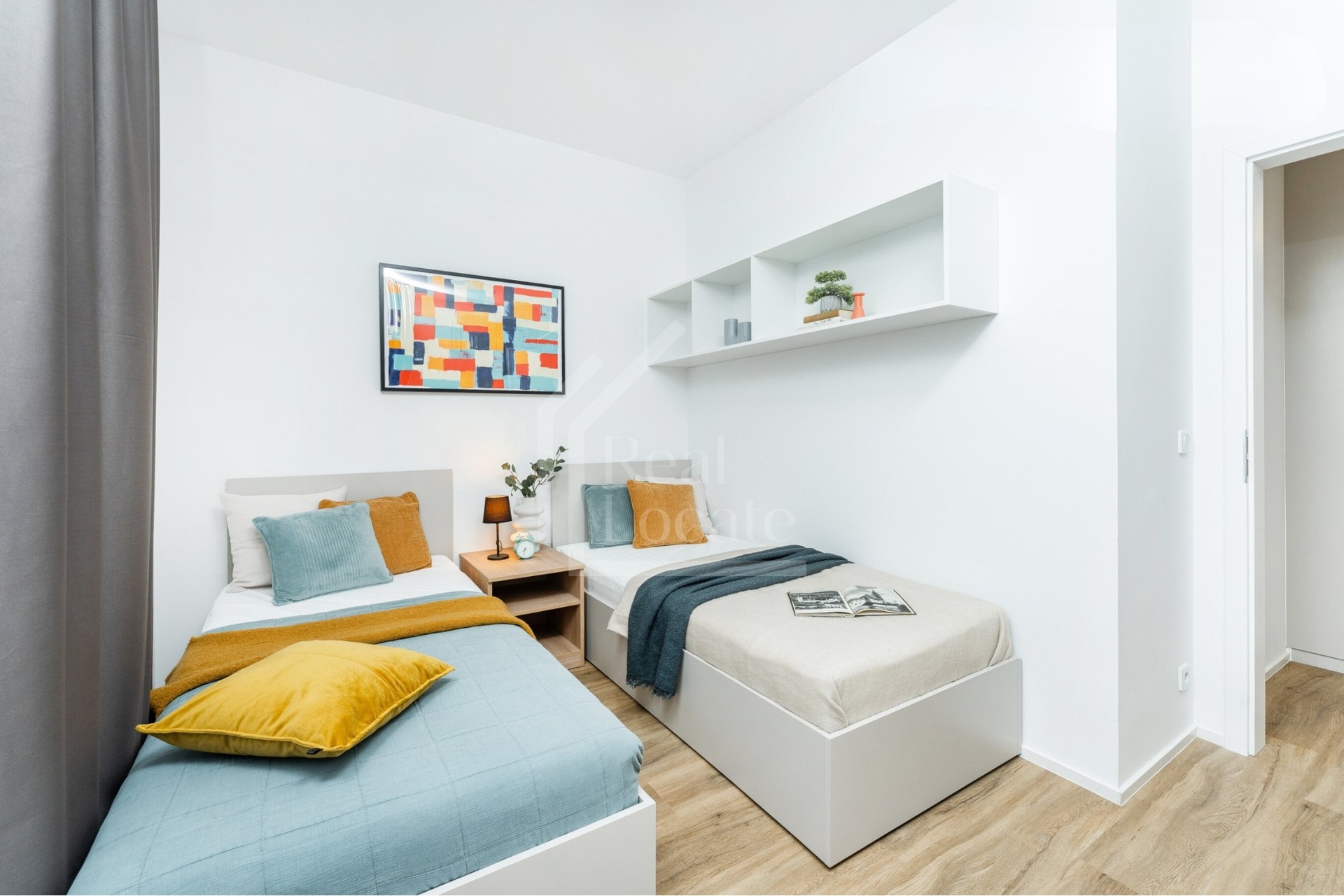 Квартиры в проекте полностью оборудованы, энергоэффективны и готовы к немедленному заселению. В них предусмотрены все удобства - от современных кухонных гарнитуров до просторных ванных комнат с ванной и/или душем. Предоставляется вся мебель, включая качественный матрас, телевизор и множество продуманных мест для хранения, а также стиральная машина (в ванной или кладовой). Обстановка также включает в себя современные технологии, такие как кондиционер с рекуперацией тепла, возможность разблокировки с помощью чипа или защищенной подготовки для высокоскоростного подключения к Интернету и цифрового телевидения, а в большинстве квартир есть жалюзи с электроприводом. В отдельных квартирах также есть роскошная отдельная гардеробная.